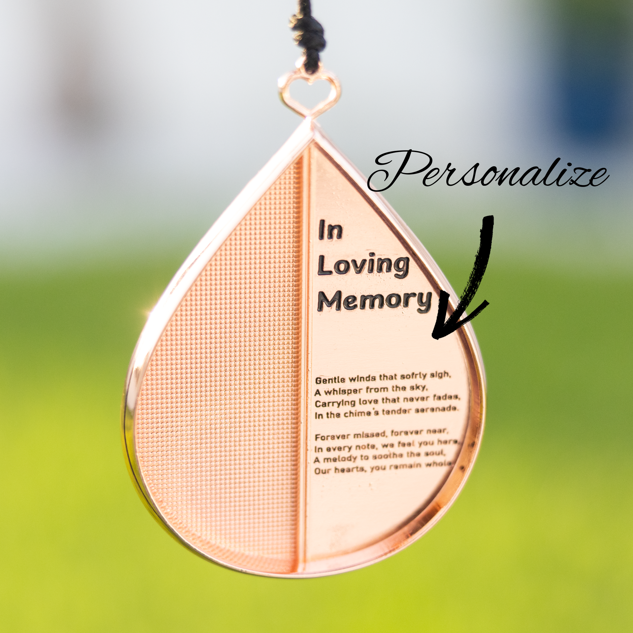 Provide a more meaningful gift with a personalized wind chime. The poems on the front of each sail stay, as shown on product listing. The personalization will replace the tree side of the sail pendant. We can use this side to create whatever you'd like in order to provide a touching gift cherishing those speical memories. Most customers still choose to use our signature tree, then personalize underneath it. Whichever the case, provide us details of your personalization by selecting the personalization option on the product page. If there is no option for personalization on product page, it’s not offered on that product currently but check back soon!